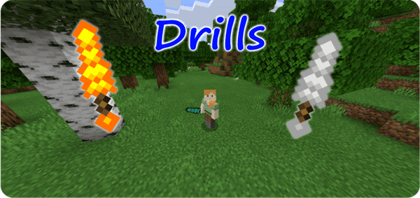 This addon introduces a drill for each tier of ore, wooden to diamond, which can mine every type of block efficiently. To craft them you only need 2 sticks and 3 of each type of ore.