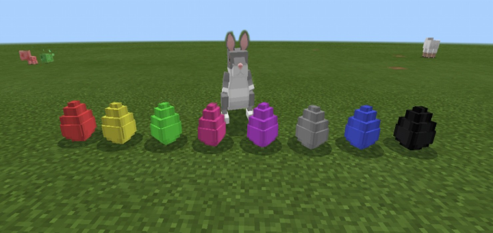 This addon adds 8 edible easter eggs, it also adds a rabbit and a mob that will spawn easter eggs.