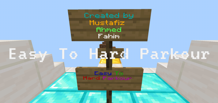 Easy to hard parkour offers different types of challenges. With each getting harder as you progress through. This map is a good place to practice and test your skills of parkour. There are 10 stages of parkour. With each having a unique style as you see in the pictures. After completing each stage you will get a check point. They are both hard and easy. This map can also be place to race with your friends. This parkour offers a new challenge!