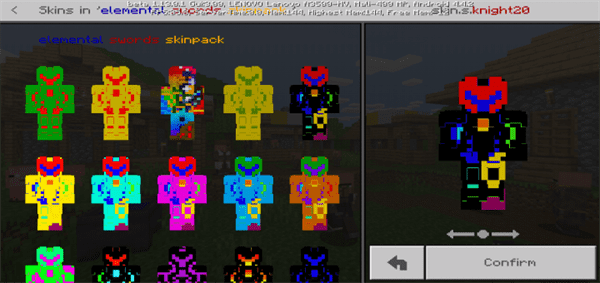 The skins are now about 20. I’ll add alot on next version. Check out my ELEMENTAL SWORDS ADDON on this site.