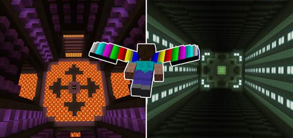 Find a pair of elytra wings in one of the chests and equip it in your chestplate armor slot. Jump into a level when you are ready and then press the jump button again to activate gliding. The objective is to get to the end of the level, press a button and then continue on to the next level.