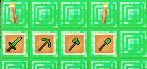 The Emerald Pickaxe do 3 attacks of damage, sadly mines blocks by walking into them because Minecraft doesn’t allow making normal Pickaxe items
