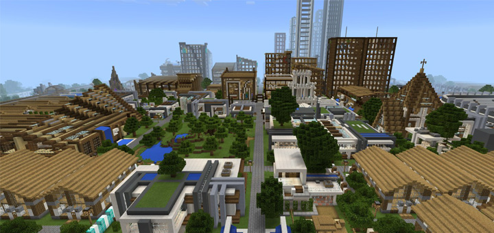 Epican Republic consists of two main cities and combined they include hundreds of structures such as suburban homes, skyscrapers, stadiums and churches. The main thing which I like about this map is that it looks very “Minecrafty”. The building style is much similar to how the default structures in Minecraft look like (e.g. villages). The only downside is that it is built in a flat world and that means that you are limited to the cities and can’t really go anywhere else.