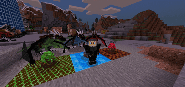 They are very hostile and very powerful, dragons have 4 variant skins, and they spawn on extreme hills, tamed dragons collar can be dyed, tamed dragons can carry 2 players,