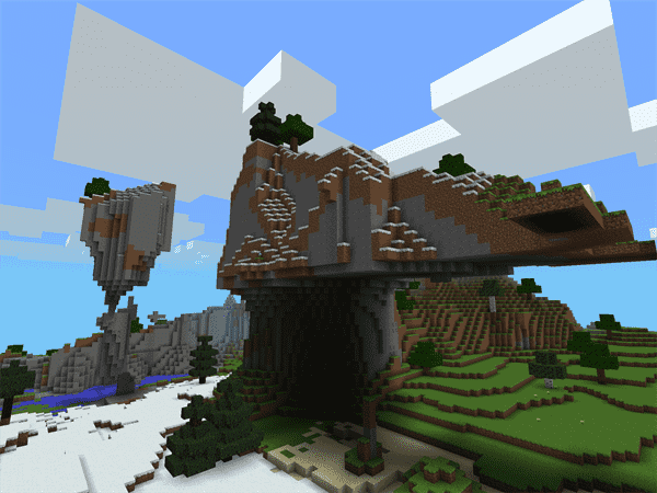 The name for this seed really speaks for itself; extra nuts. The extreme overhanging hill in this seed is really magnificence. You’ll also find a couple of islands floating in the air nearby the main attraction. Have a look and enjoy this unique seed!