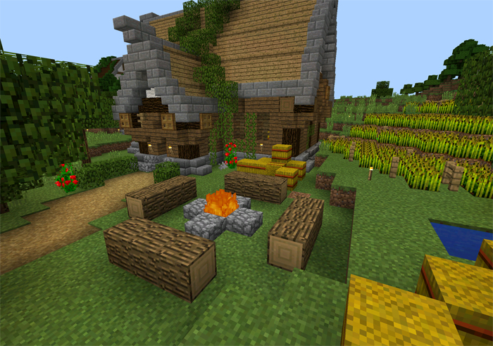 There are a lot of creative builds in the map. Here’s a little cottage and a campfire.
