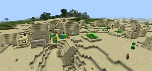 Here’s a great seed which got a triple village a short walking distance from spawn. There are plenty of farms and a chest with some amazing loot waiting for you.