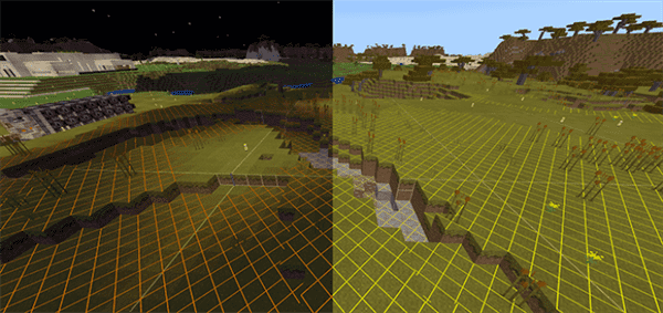 这 是 一 款 可 以 显 示 红 石 能 量 , 区 块 边 界 , 刷 怪 区 域 的 着 色 器 .