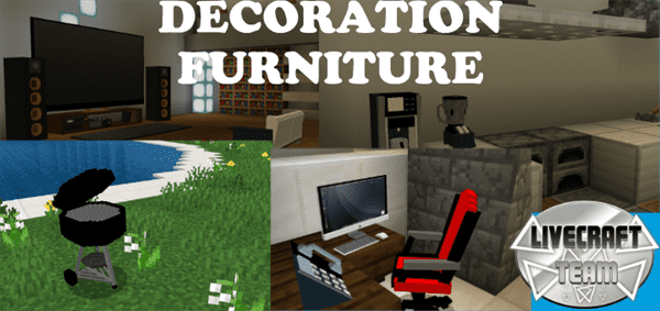 Add a modern and realistic touch to your house with our modern looking furniture, wich include an iMac, a telephone, a speaker, blender, entertainment system, a couch, coffee maker, and more. But this addon its not finished yet, you have to finish it. Tell us in the comment section what would you like to see in the next version and we will maybe add it.