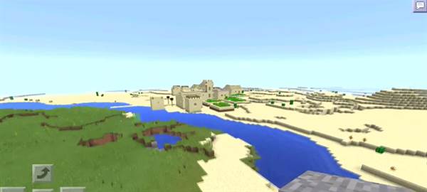 The spawn is literally in front of the first village which is nicely located next to a beautiful river which divides the desert (where the village is at) and a forest biome.