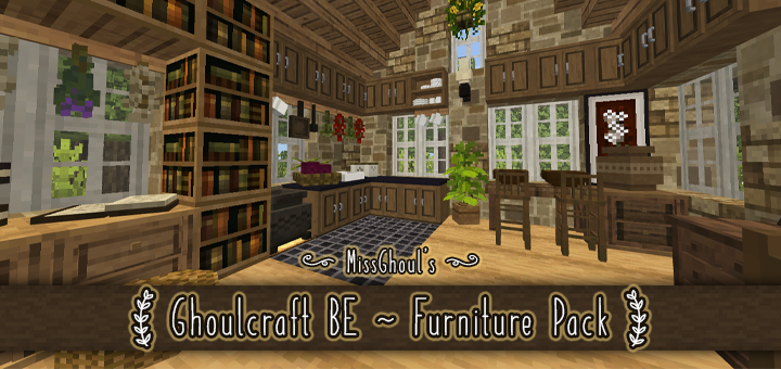 Ghoulcraft is a Data-Driven Block Add-On Pack. This adds bunch of new blocks and items to use into your world as decorations! These can be counters, drawers, chairs, beds, and many more! This pack focuses on all of the Furniture items! All furniture items in all wood type are included in this pack.