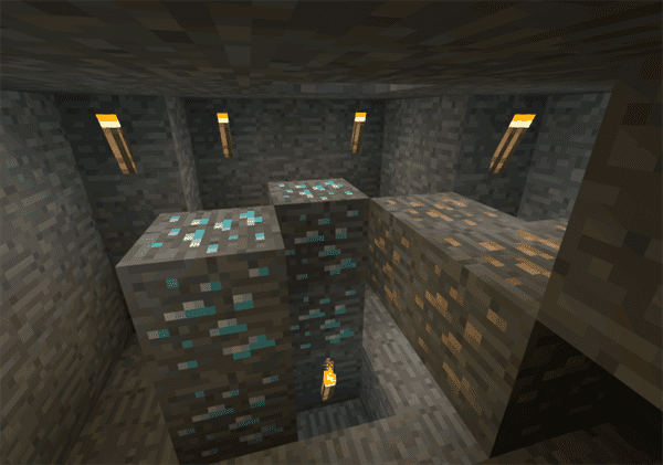 And as we promised, four diamonds and some iron, all ready to be mined.
