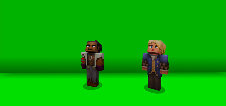 In this example I got a screenshot of two players in-game standing at the green screen. I then used Photoshop (GIMP is a free alternative) to remove the green background. The process is very easy because you can use the Magic Wand Tool to select the green color and then delete it.