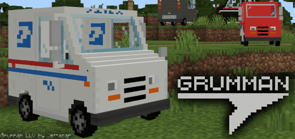 The standalone version includes four Grumman LLV’s; the blank white one, the flames one, the USPS one, and the Canada Post one. They can be found with the Spawn Eggs if both the resource pack and behaviour pack are turned on.