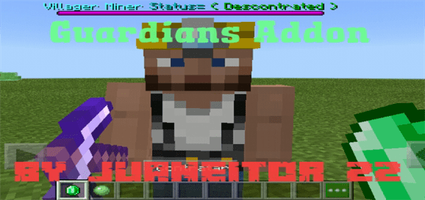 Defend the villagers while in the village, if you hit a villager he will attack you. He has a bar that indicates certain information about him. You can hire him with an iron ingot for 3600 seconds. You can also equip him with a bow