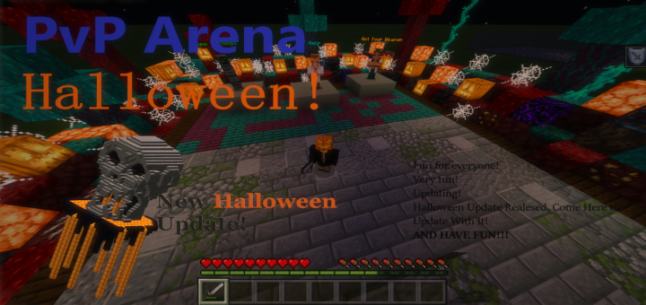 This world is a PvP Game, using commands to operate the world. PvP is fighting players. This is currently Halloween styled due to the upcoming holiday, Halloween. In this world experience having fun, choose a sword to use, and soon there will be bows! Maybe even add on weapons to use! Have fun!