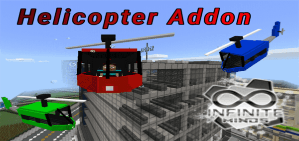 This addon adds helicopters in different colors. These helicopters are great for accessing higher terrain more quickly in Minecraft, or to move fast in the air and pass over mountains without problems.