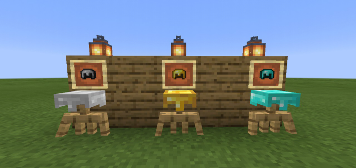 Instead of editing the actual models of the helmets and making them look like shiny hats, I changed the ITEM texture of these helmets to match the model, which makes the helmets more consistent and look better overall.