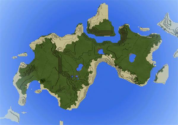 The spawn is on a large island out in the ocean with no mainland to be seen anywhere close. Around the main island are a couple of smaller islands, mostly sand covered islands.