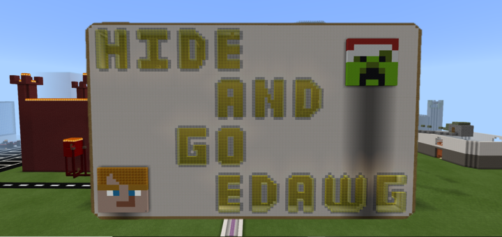 The reason why it is called hide and go edawg instead of hide and seek is because we originally built a similar map on a server called edawg and played it there (Server Ip for Java Players: EDAWG878.COM).