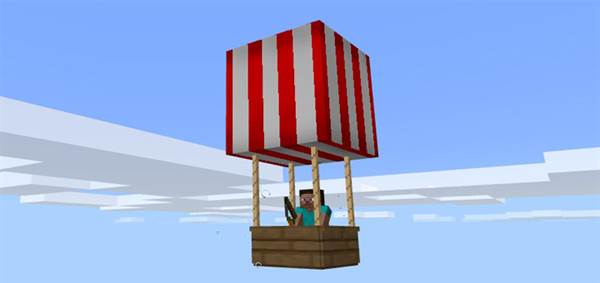 The Hot Air Balloon is a lightweight aircraft which can be used to carry one passenger for long distances over mountains and other rugged terrain. It’s not the fastest way to go but it’s probably among the safest as no hostile mob (at least not in the Overworld) can reach you while you’re up in the skies.