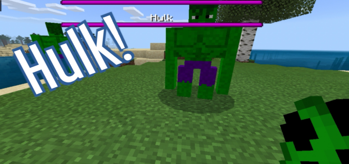 Hulk is a new boss added to the game. It is peaceful at first but if you hit it, it will spawn evoker and attack you! Hulk won’t attack you but it will spawn evoker if you hit him in survival!