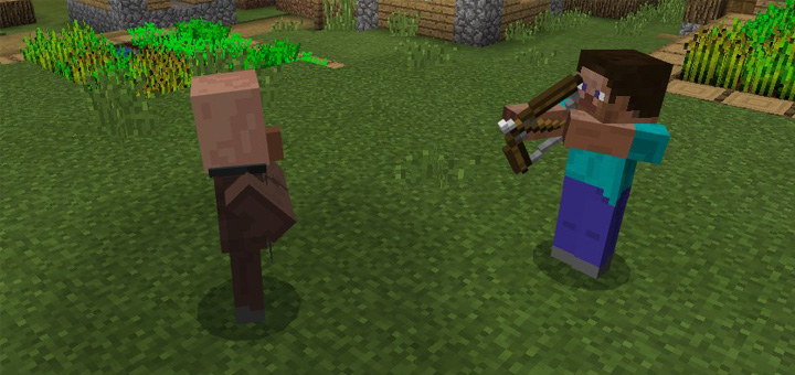 Normally I would have had to shoot four arrows at a villager to kill it. If I enable the Hurtful Arrows Addon one arrow is more than enough.