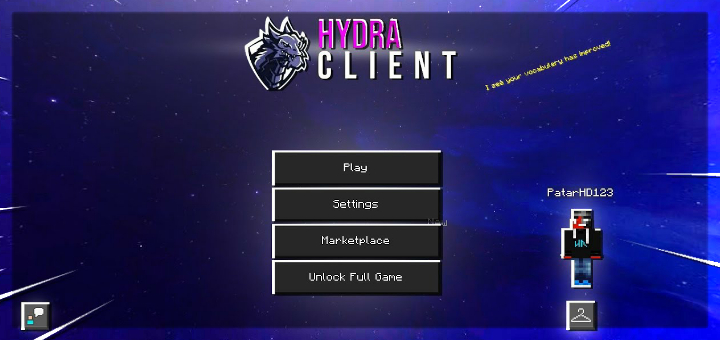3. SETTINGS Go to settings, click resource packs then click Hydra Client then it must popup "Activate" Click it now click the back button and now use the client!