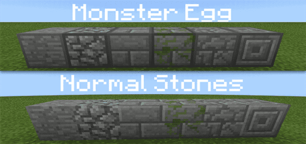 This texture pack let you distinguish which monster egg stone are or which are normal stones. A monster egg stone (infested block) spawn silver fish when mined or broken by explosion, monster egg disguised as stones (such as cobblestone, stone brick, mossy stone brick) that let you won’t notice which is it. With the help of this texture pack you can notice if it’s infested block or not. So you can prepare for it or prevent it to mine. The texture of stone and Monster egg are now different to let you identify. Infested Block has dark reddish outline in a block while texture of normal isn’t change.
