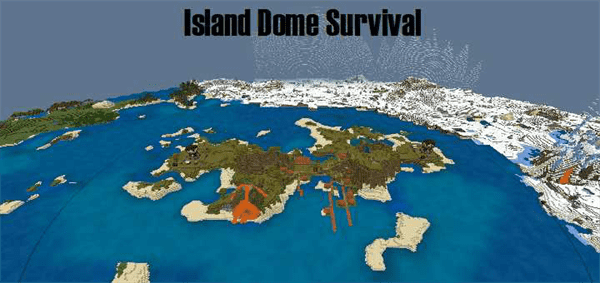 The inside of the dome, showing off the whole island you’ll be staying on. Here’s what it looks like with and without “Invisible Bedrock Resource Pack”: