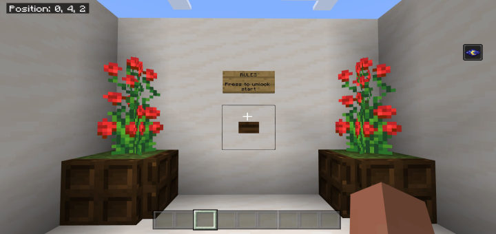 Hello. In this map you are in a laboratory doing tests. You must complete all puzzles and finish to earn your freedom. You are going to go through mazes, Redstone puzzles, parkour, Minecraft knowledge and much more!