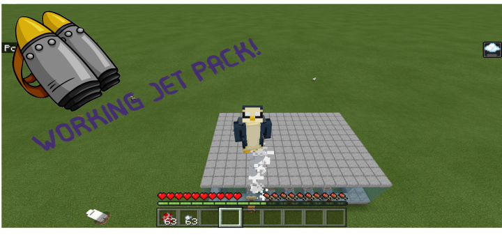 This map is a jet pack that makes you fly into the skies! The jet pack includes sounds when activated, smoke particles below feet, and elytra playing roll as the jet pack…