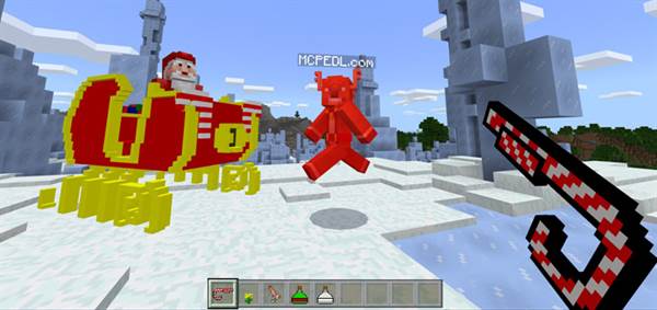 This addon replaces some of the ordinary items in Minecraft with Christmas themed weapons. It also adds a new vehicle called Santa’s Sleigh. It’s Christmas times and it’s time to update your weapons arsenal with a set of more suitable weapons. But Santa’s Sleigh is probably the best thing about it.