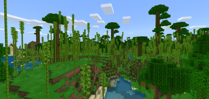 This seed will spawn you on the coast of a jungle island, with a bamboo forest and a coral reef close by. Yes, pandas do naturally spawn here!