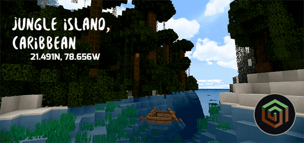 Come and explore a jungle island in the Caribbean surrounded by vast ocean. With mountainous topography, along with a lake and beaches, this island is perfect for building. Animal/mob spawning occurs randomly across the map.