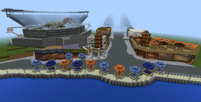 However, in this map the creator appears to be trying to tackle the challenge by presenting several areas in a larger scale. Discover everything from the huge whale dinosaur eating sharks for breakfast to the vicious Indominus Rex dinosaur mutation. The downside with the map is that it is built in a flat world which takes away some of the realism.