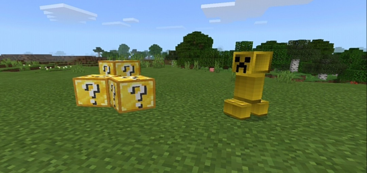 To get a Lucky Block, look around you for a gilded creeper. Gilded creepers are neutral utility mobs that will trade with players, and also attack monsters. It is strong and will attack you if you accidentally hit it, so be careful. Gilded creepers spawn on the surface the same way animals do, you’ll know when they’re nearby when you see a message pop up on the top left.