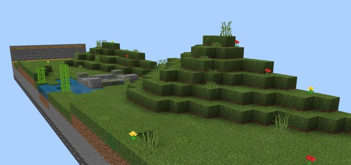 Currently, as of release 1.0 there is only 1 map. As the name suggests the map is a strip of custom built Minecraft terrain with a few hills a pond and vegetation. On the ends of the map are where the players will be spawned into, the stone brick wall has multiple kits to choose from to battle it out with a friend.