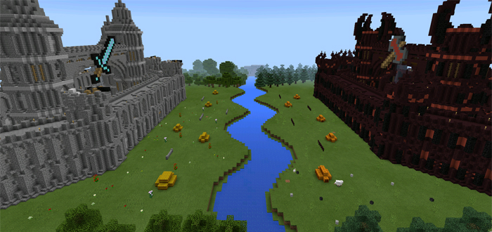 Last King Standing is a PvP map where each team’s objective is to kill the other team’s king or destroy the castle using the TNT cannons. The only thing dividing the two kingdoms is a river. It’s a good versus evil map where there’s only room for one ruler.