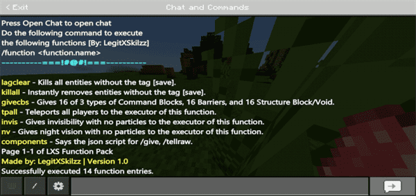 /function lagclear – Its like /kill @e BUT It only affects to entities without the tag “save” Tag youreself by doing /tag