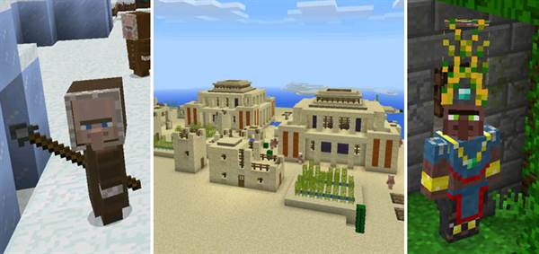 Aztec cities can be found in jungles. They consist of everything from large temples to smaller houses all made out stone. Here you can find all types of funny-looking villagers.