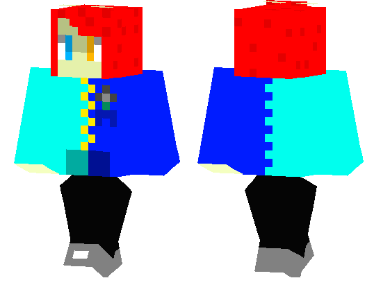 red hair sweatshirt cyan and blue orange and blue eyes