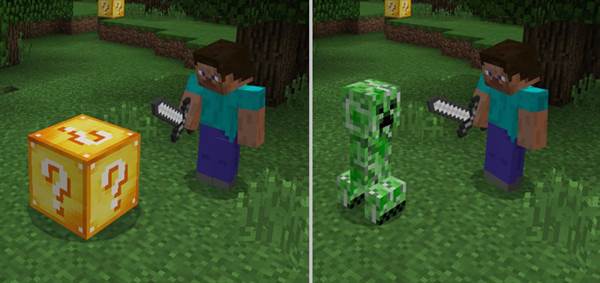 The Lucky Blocks Addon adds an exciting element to the game. It looks very much like a block but it is in fact an entity which you can kill. Once it is killed something random will happen. If you are lucky you might get lots of valuable items but sometimes something much worse happens such as the wither boss spawning.