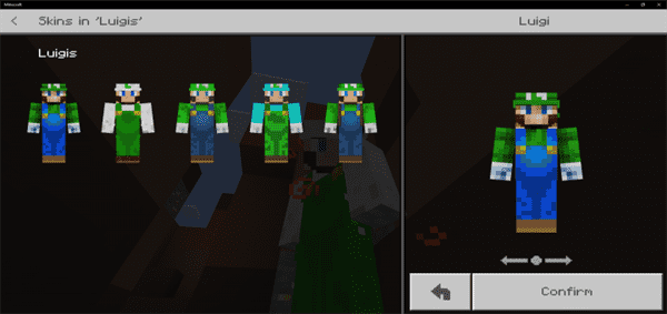 No problem, now you can use one of the 5 Luigi skins to play in a Minecraft world and have fun with your friends.