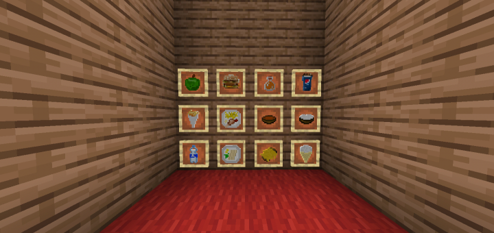 This Datapack adds 41 new tasty food in Minecraft! Now you can eat and drink something different and no more boring potatoes. An elegant steak dinner or burgers with chips and cola!