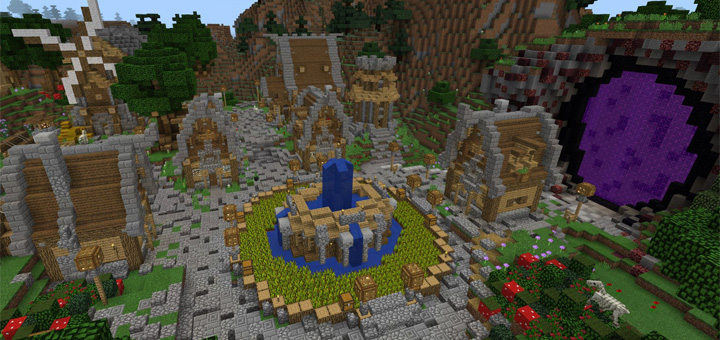 Start out your next adventure gameplay in a small medieval village. It’s beautifully designed with lots of cute little houses, farmland and other nicely designed structures. In one end of the city you will find a large portal which will get you to the Nether. It’s really the perfect map if you want to live in a city but don’t want to do the hard work of building it.