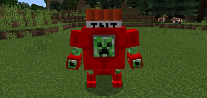 They wear a red body armor and on their shoulders they carry a TNT block.
