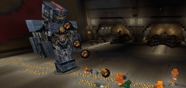The Mega Mech spawns as soon you place the pumpkin on the top center iron block of the structure. It is much bigger than most mobs in Minecraft and it’s also incredibly powerful.