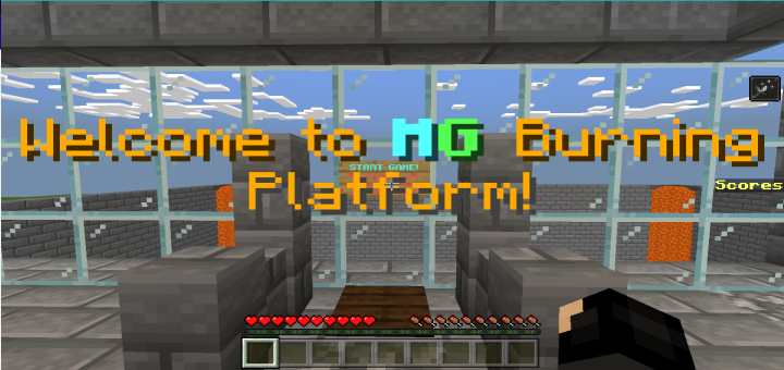 Join in a fun minigame invention and completed build! Recommend 3-10 players! Survive the burning platform as the platform gets dissolved from fire and lava! Use a fishing rod to pulls others into the void and eliminate them. get points by standing the longest!