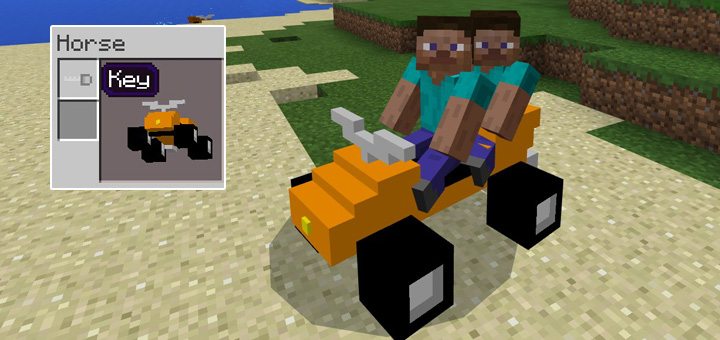A quad bike is a four-wheeled vehicle which is designed to work in most terrains except for obvious ones such as water or lava. It’s a pretty fast vehicle which can carry up to two players at the same time. It exists in lots of different colors so the chances that you will find something you like are very high!